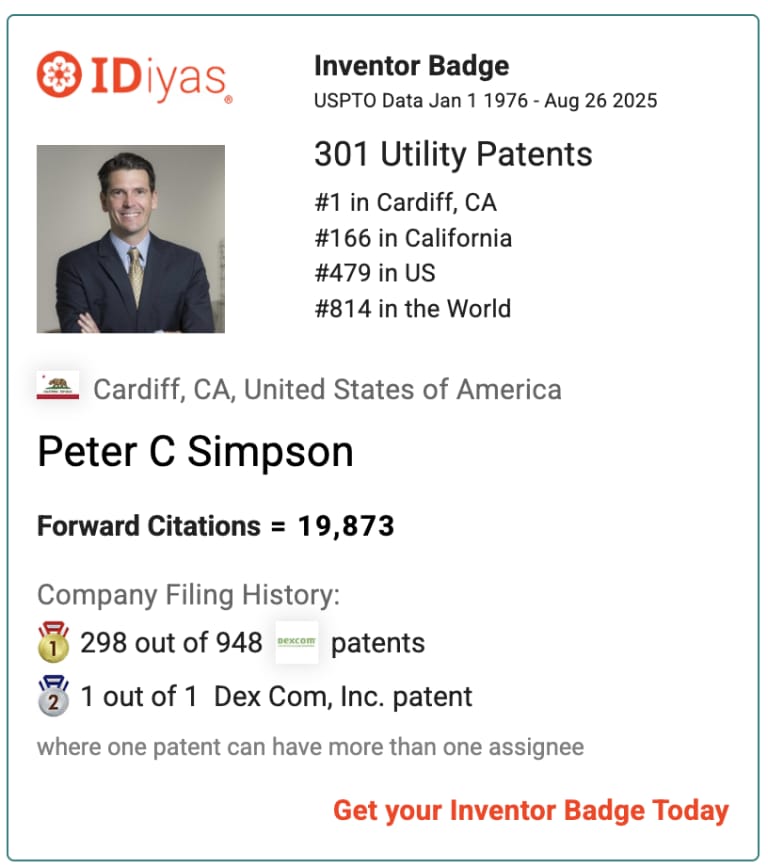 Peter C SimpsonSVP of Sensor R&D and Advanced Research & Technology at Dexcom. ![]() | ![]() Patent 12396663 – Systems and methods for monitoring and managing life of a battery in an analyte sensor system worn by a user. Systems and methods are provided for analyte monitoring that include managing and extending battery life in wearable analyte sensor systems. |