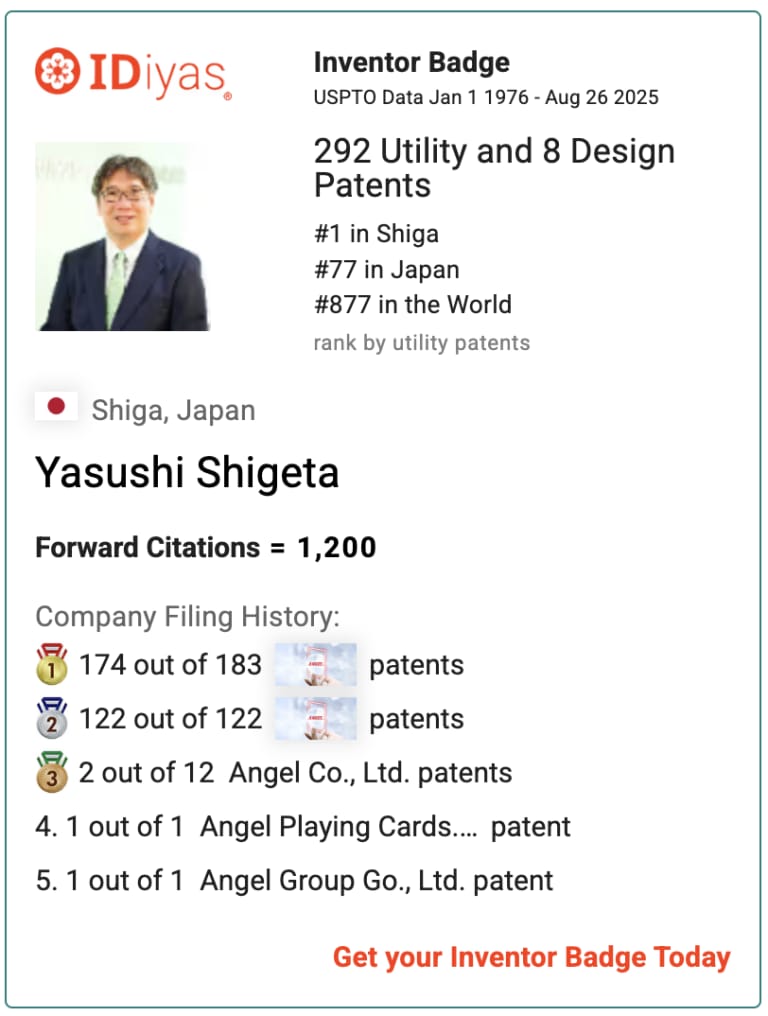 Yasushi ShigetaChairman and owner of one of the world’s largest gaming industry suppliers, Angel Group. ![]() | ![]() Patent 12400517 – Fraud detection system in a casino. Detects fraud in chip collection and redemption by capturing images of a dealer’s chip tray, analyzing chip amounts, determining game results, and comparing changes before and after transactions. |