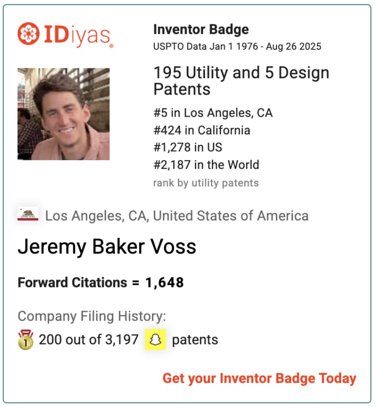 ![]() | Jeremy Baker VossDirector of Product Management at Meta. ![]() Patent 12400389 – Animated expressive icon. Improves screen recording usability in a messaging system by removing client focus during recording to protect privacy and automatically pausing when focus is restored. |