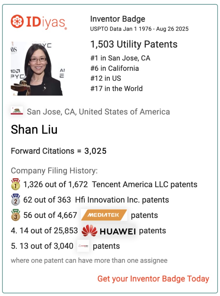 Shan LiuDistinguished Scientist and General Manager. ![]() | ![]() Patent 12401828 – General constraints information for transform skip. The disclosure relates to video data processing, where processing circuitry uses syntax elements in a bitstream to control coding tools for residual coding. |