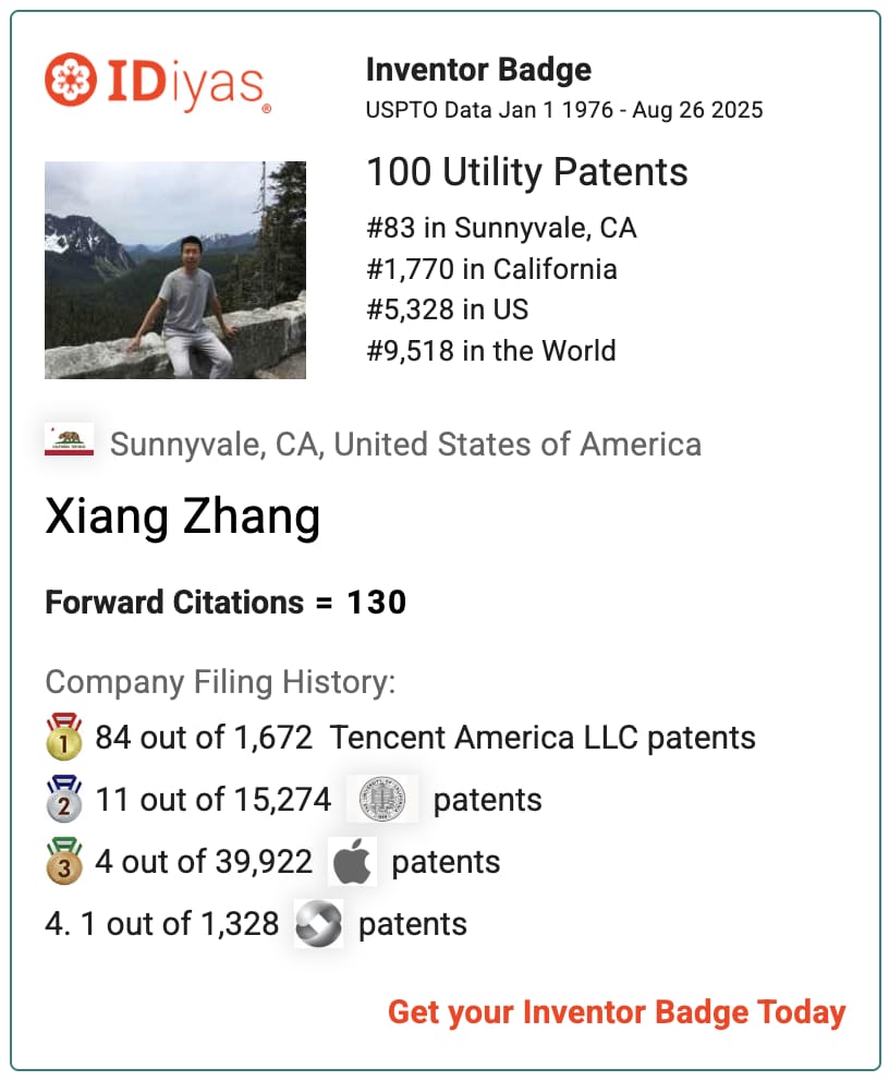 Xiang ZhangDirector at Tencent Strategy Departmet (Group level). ![]() | ![]() Patent 12401823 – Vertex prediction based on decoded neighbors. A method and apparatus use computer code to process volumetric 3D content by generating a mesh with first-layer vertices, computing displacement vectors to a denser second layer of vertices, and signaling the volumetric data based on those vectors. |