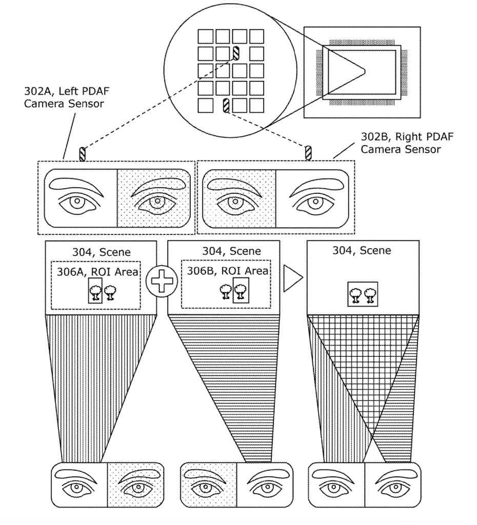 Depth enhancement is achieved by combining PDAF data from a color camera with standard depth maps within a specific gaze region.