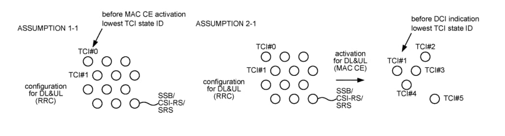 The terminal determines the TCI state. It receives configuration data for multiple channels. Then, it uses control information to select the specific state. Thus, the TCI state establishes the QCL parameters.
