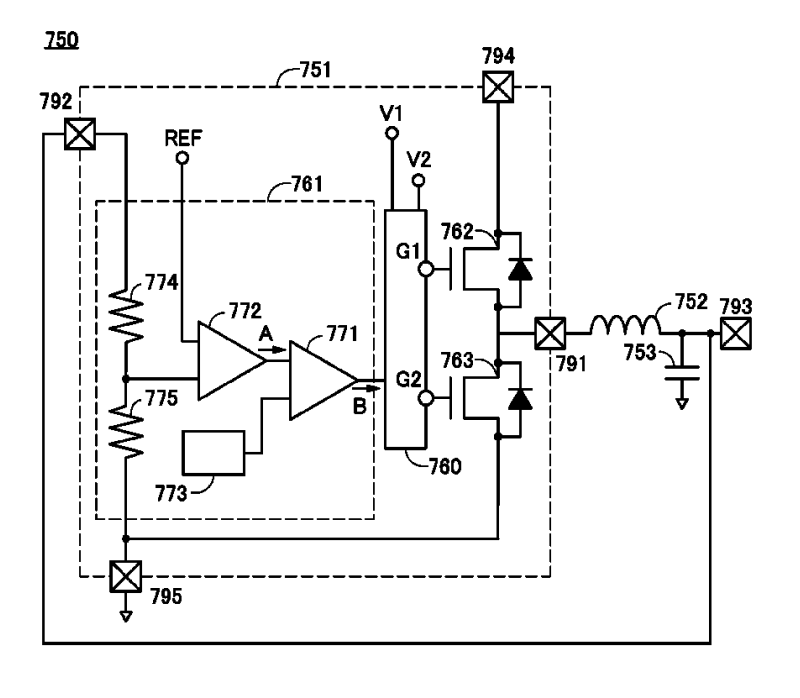 A compact, low-power, highly integrated semiconductor device includes a first transistor, a stacked gate driver with two metal-oxide transistors, and a conductive layer that connects the gate driver to the first transistor’s gate to switch between two potentials.