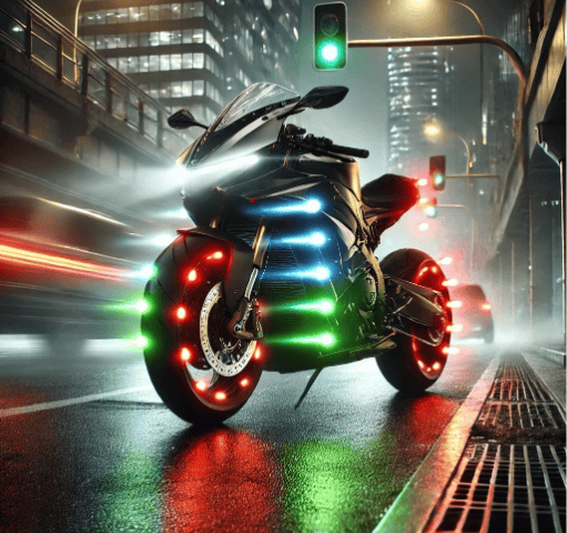 The concept utilizes a distinctive lighting arrangement: white lights are placed at the front and red at the rear, resembling the watercraft's stern and bow lights. Additionally, green and red lights on the sides mirror those found on boats, signaling the vehicle's orientation to others. Such a system promises to make motorcycles more conspicuous, particularly in low-visibility conditions like nighttime or adverse weather, potentially reducing accidents and enhancing rider safety.